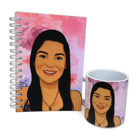• Kit Escritório Personalizado com Caricatura – Agenda Permanente + Caneca